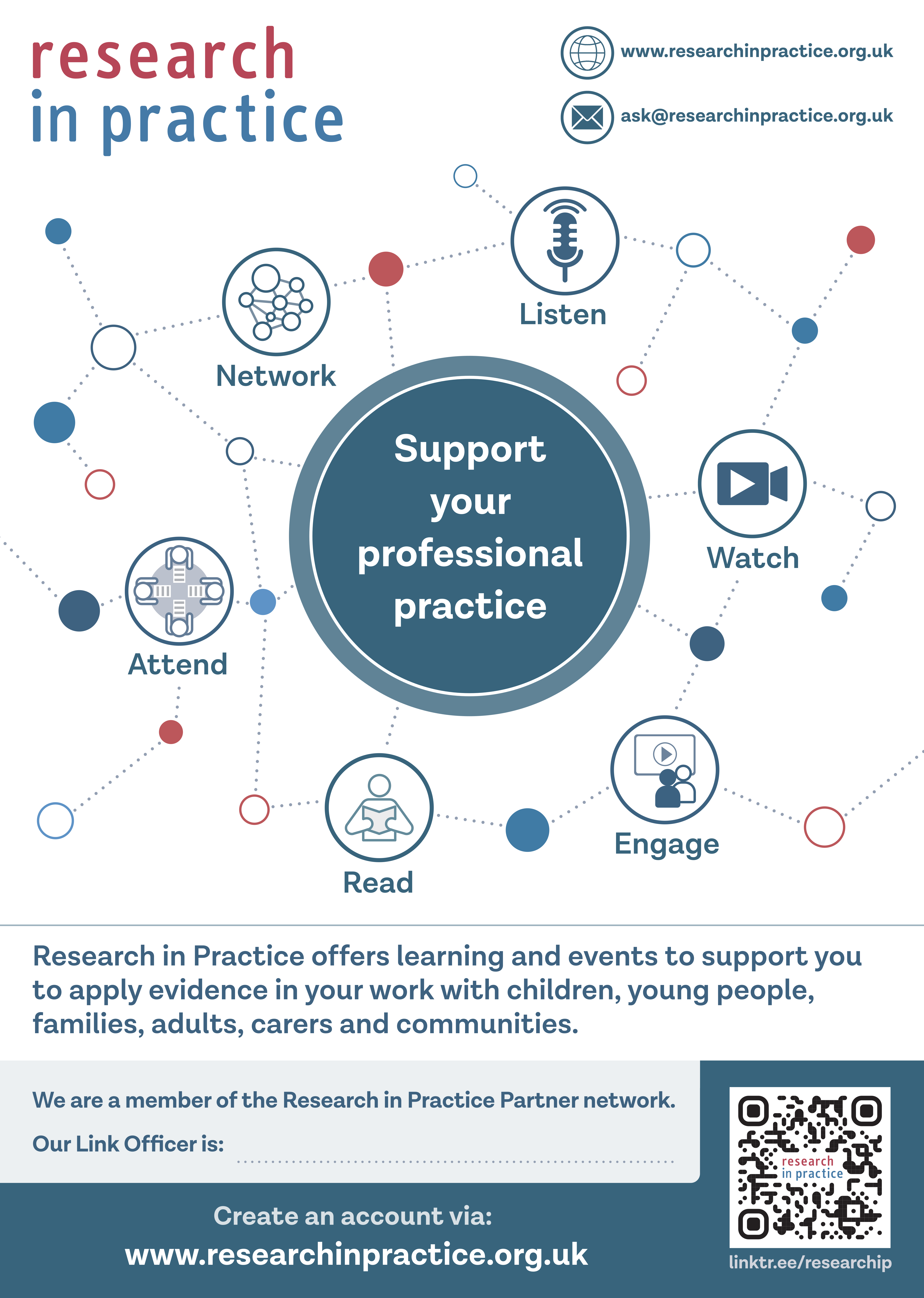 Use this poster to promote use of Research in Practice in your organisation and add contact information so your colleagues know who their Link Officer is.
