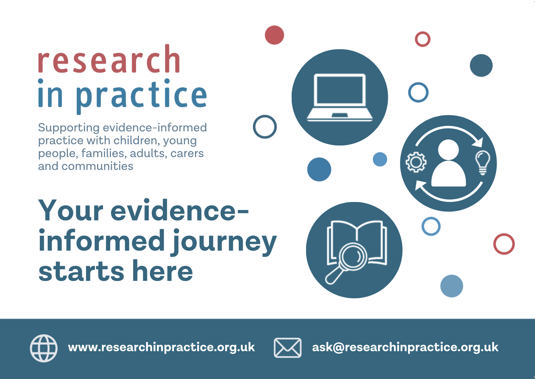 This postcard provides an overview of Research in Practice and how to create an account.