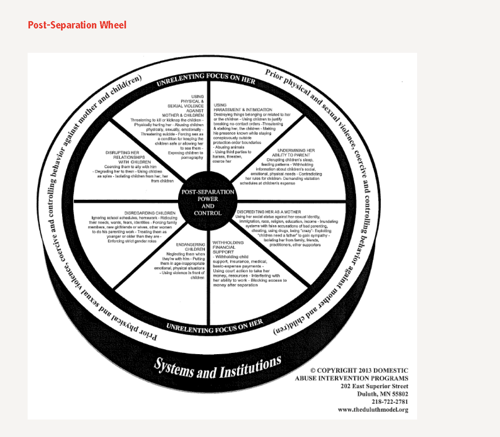 This idea is the central point in one of the first conceptualisations of coercive control, as expressed in the Duluth Model in Minnesota (Pence and Paymar, 1993). The model outlined the ‘Power and Control Wheel’ (see Appendix C) to describe the myriad of behaviours that perpetrators use to control victims of domestic abuse. Power and control is central within the wheel. A number of themes/behaviours around the wheel – such as threats, intimidation, financial abuse and isolation – are the ways in which a perpetrator will seek to establish and sustain control and power over the victim. In the Duluth Model, physical violence is on the outer edge of the wheel; it is a tactic that a perpetrator will use when the abusive behaviours do not work or as a way to ensure the threat of violence maintains the victim’s compliance.